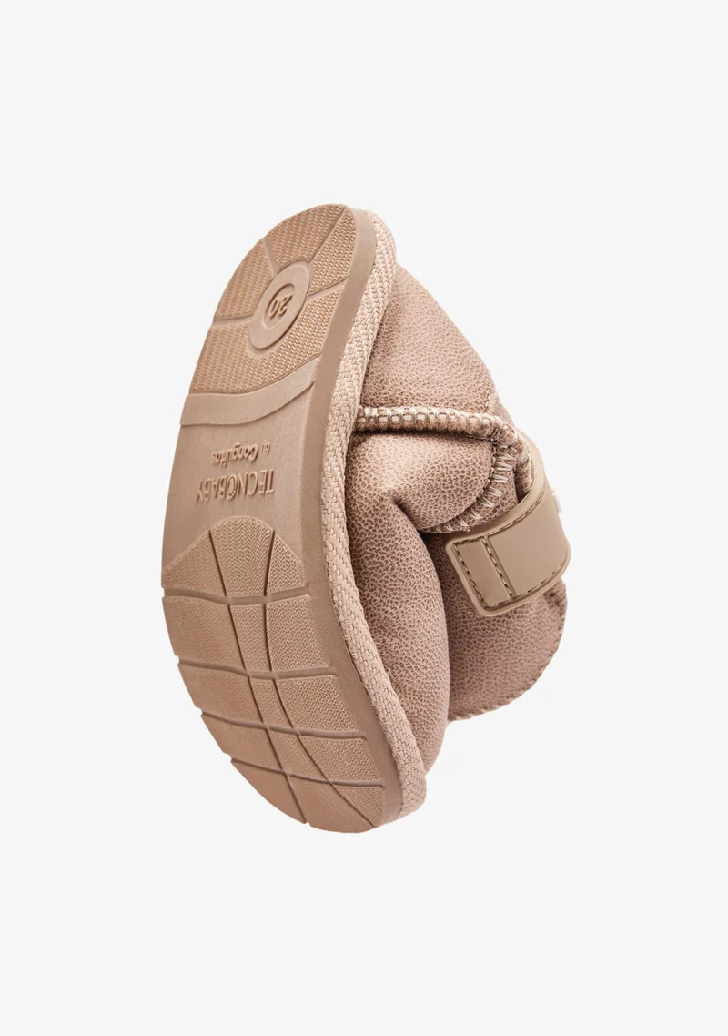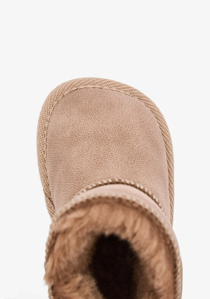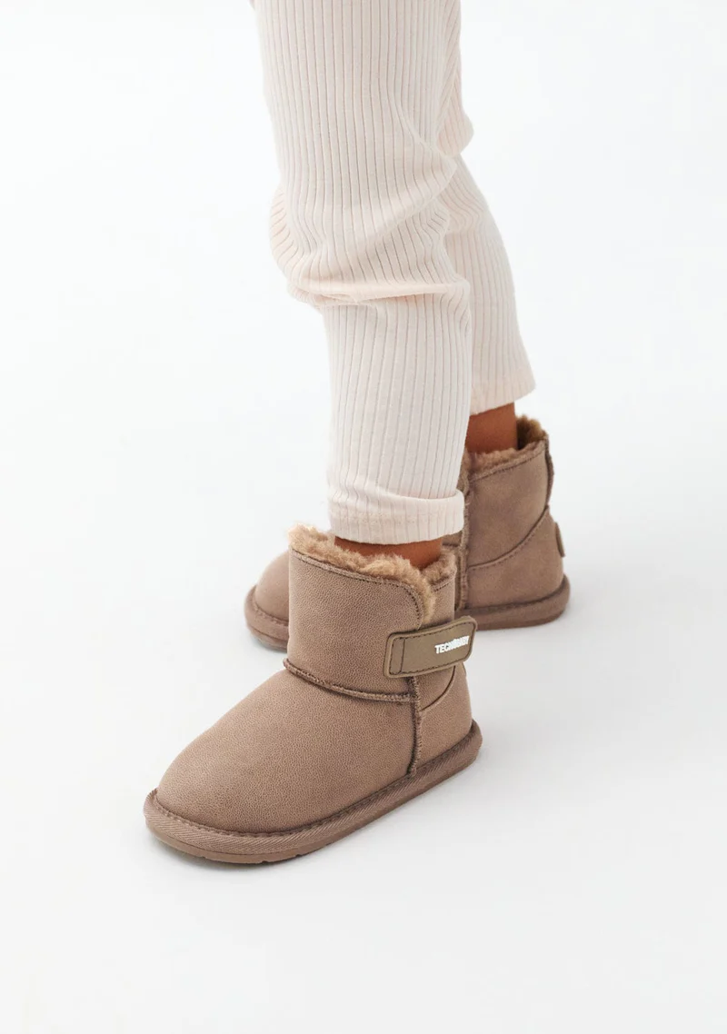 Con su diseño inspirado en las clásicas botas australianas y un color taupe fácil de combinar, estas botitas unen estilo, confort y respeto por el desarrollo natural del pie.