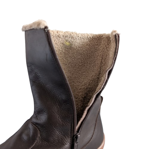 En el interior, cuentan con un forro de tejido de rizo tipo borreguito, extremadamente cálido y agradable al tacto. Este material envuelve el pie con una sensación de abrigo constante, ideal para los días fríos o húmedos. La cremallera lateral interior facilita el calce, permitiendo poner y quitar la bota con rapidez sin comprometer el ajuste.