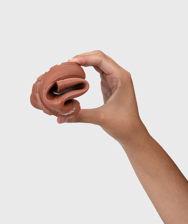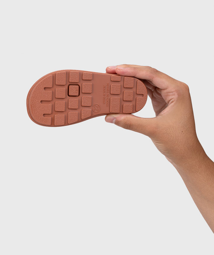 El acabado monocolor mate en tono teja les da un aire moderno y alegre, fácil de combinar. No pesan nada, se ponen con facilidad y permiten que los niños corran, jueguen y exploren sin límites.