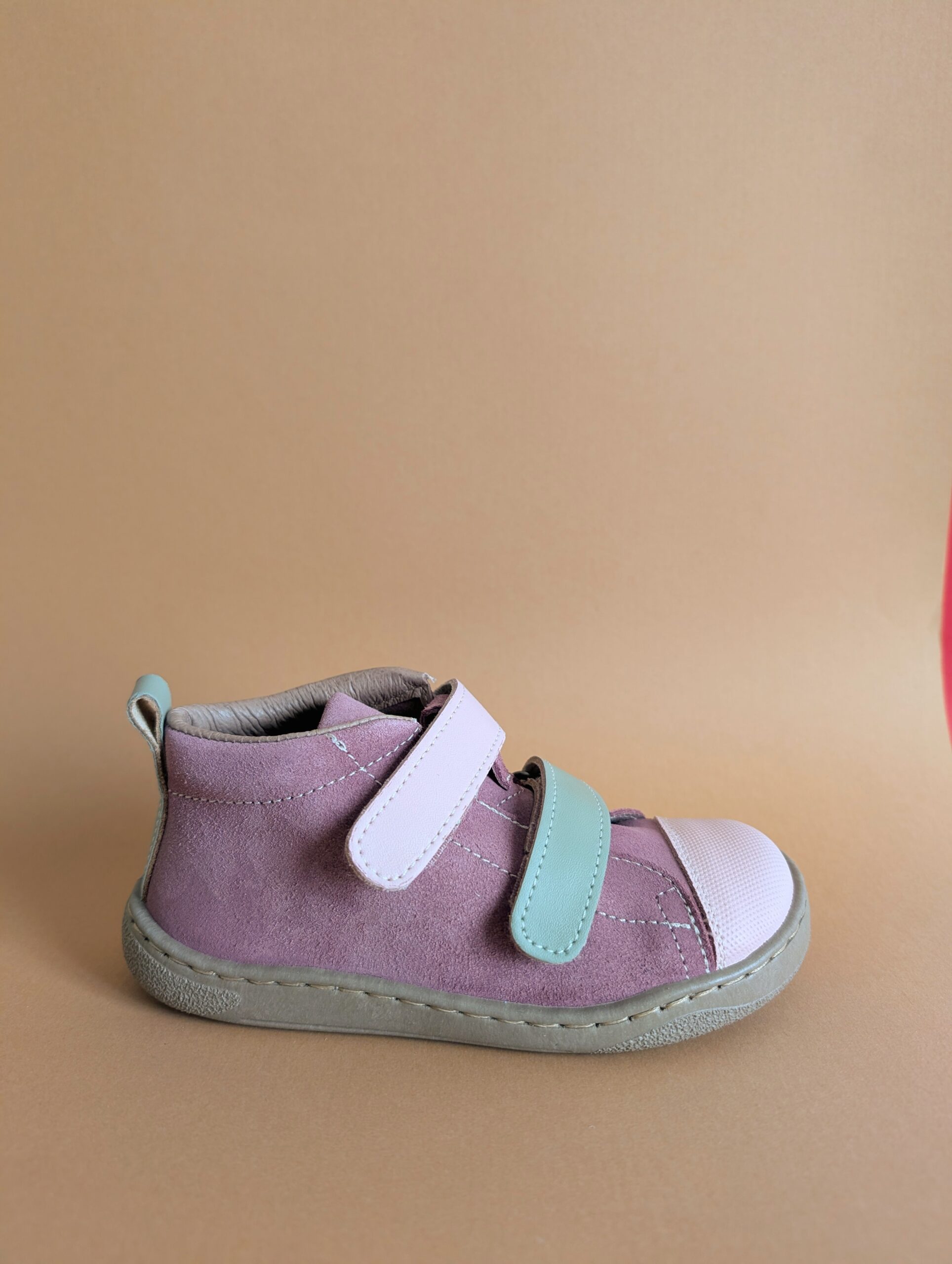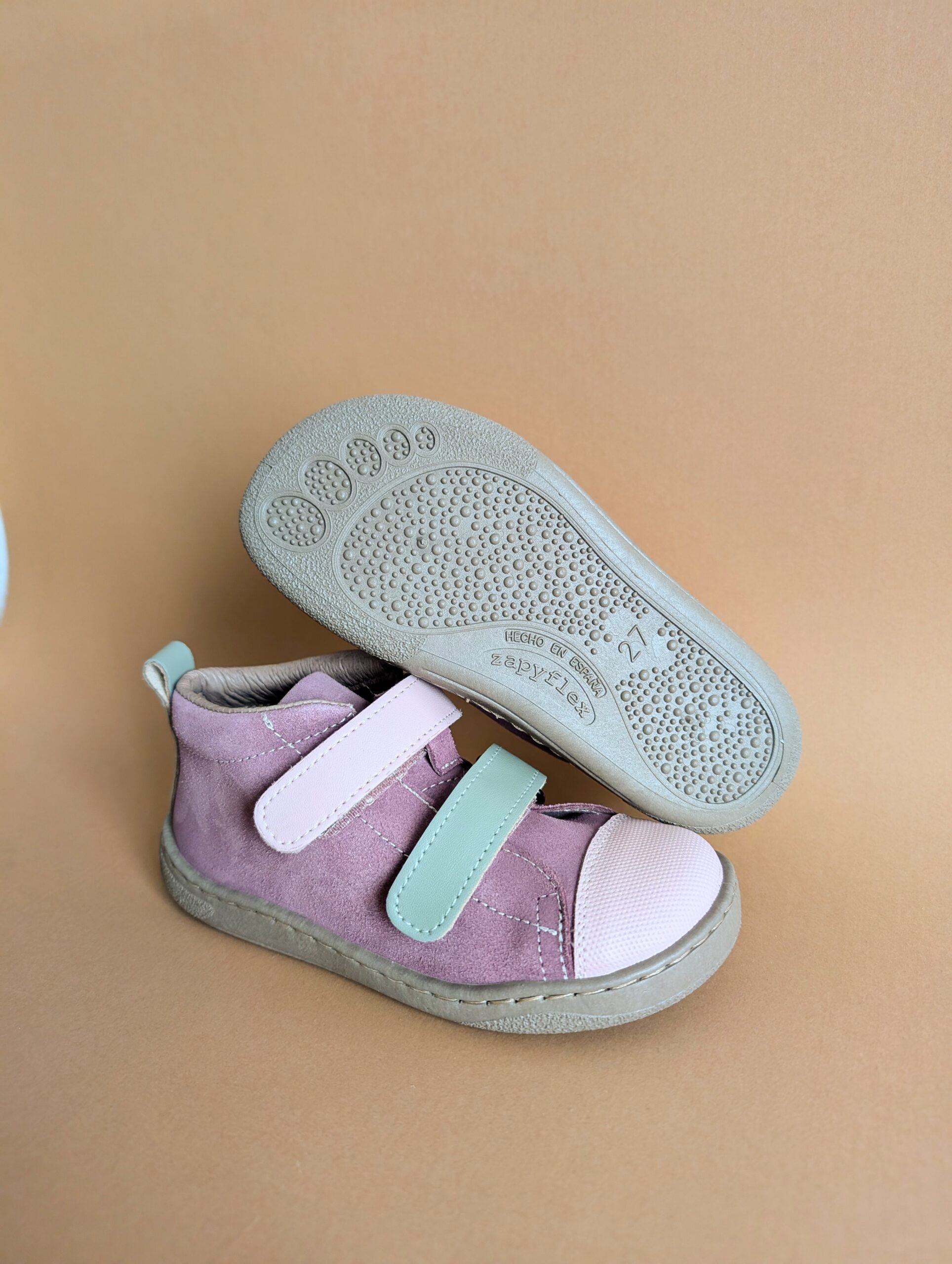Estas botas infantiles barefoot son perfectas para vivir el otoño y el invierno: cómodas, resistentes y con un toque de color que alegra cualquier día gris. Están confeccionadas en piel de serraje en tono rosado o berenjena, un material duradero y flexible que aguanta el trote diario sin perder su encanto.