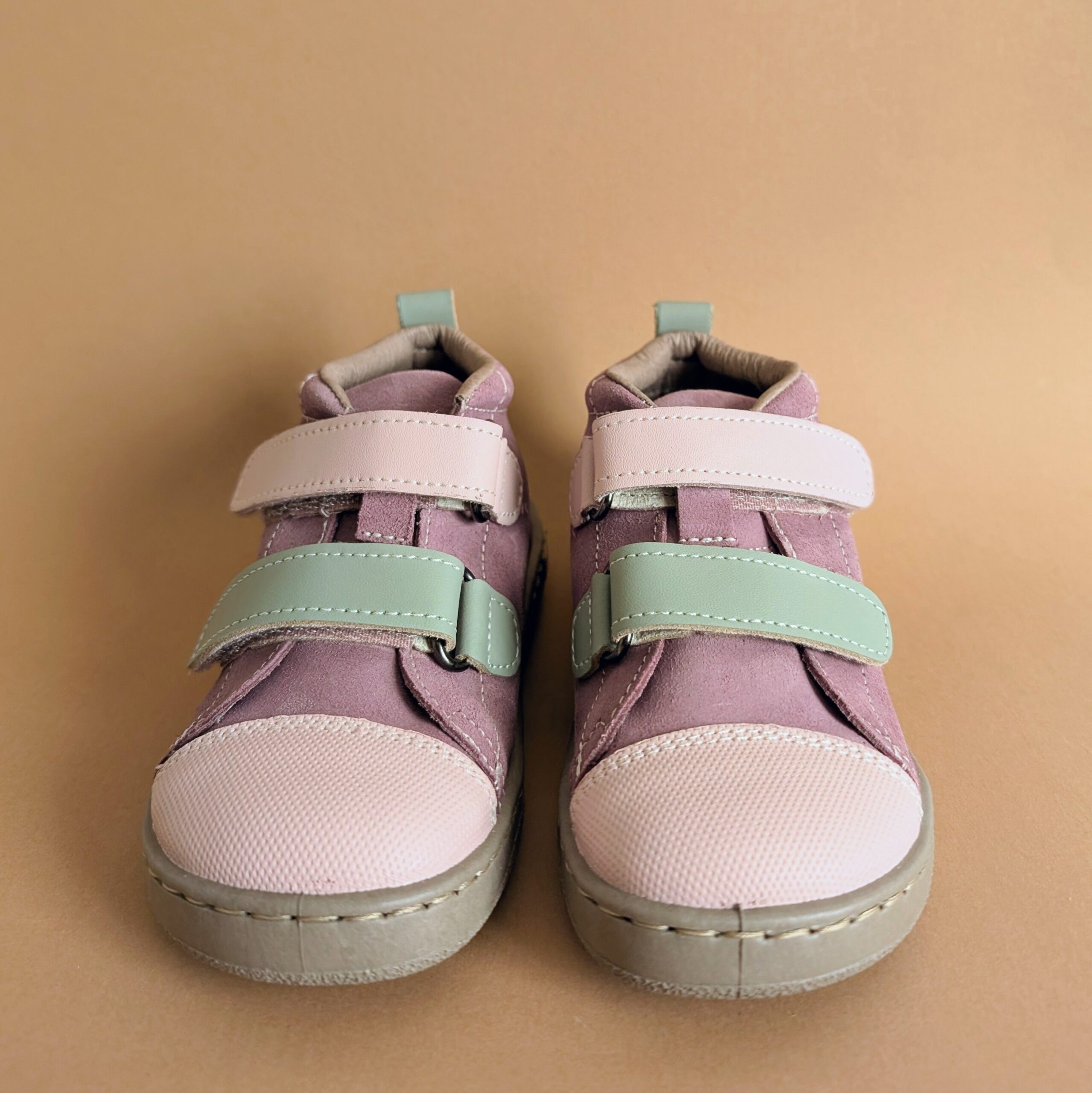 Llevan dos cierres de velcro, en verde y otro rosa, que no solo añaden contraste de color, sino que también hacen que sean facilísimas de poner y quitar (¡autonomía al poder! 🙌). Además, la puntera de goma reforzada les da un plus de resistencia frente a rozaduras y aventuras intensas en el parque.