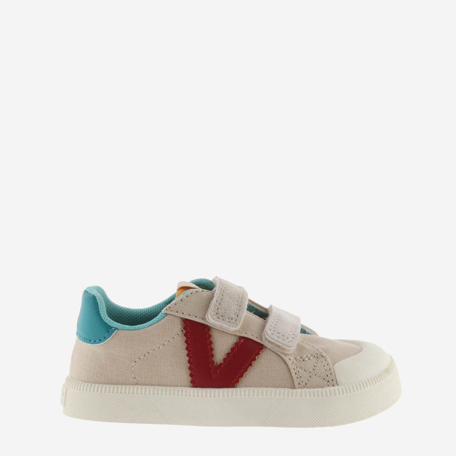Fabricadas en lona resistente en beige en contraste con toques de color. Su diseño multicolor aporta un aire alegre y dinámico, mientras que la clásica V lateral de Victoria y la pieza trasera en colores efecto piel añaden un toque deportivo con mucha personalidad. El forro interior, a juego con la talonera, cuida cada detalle y refuerza su acabado cuidado y moderno.