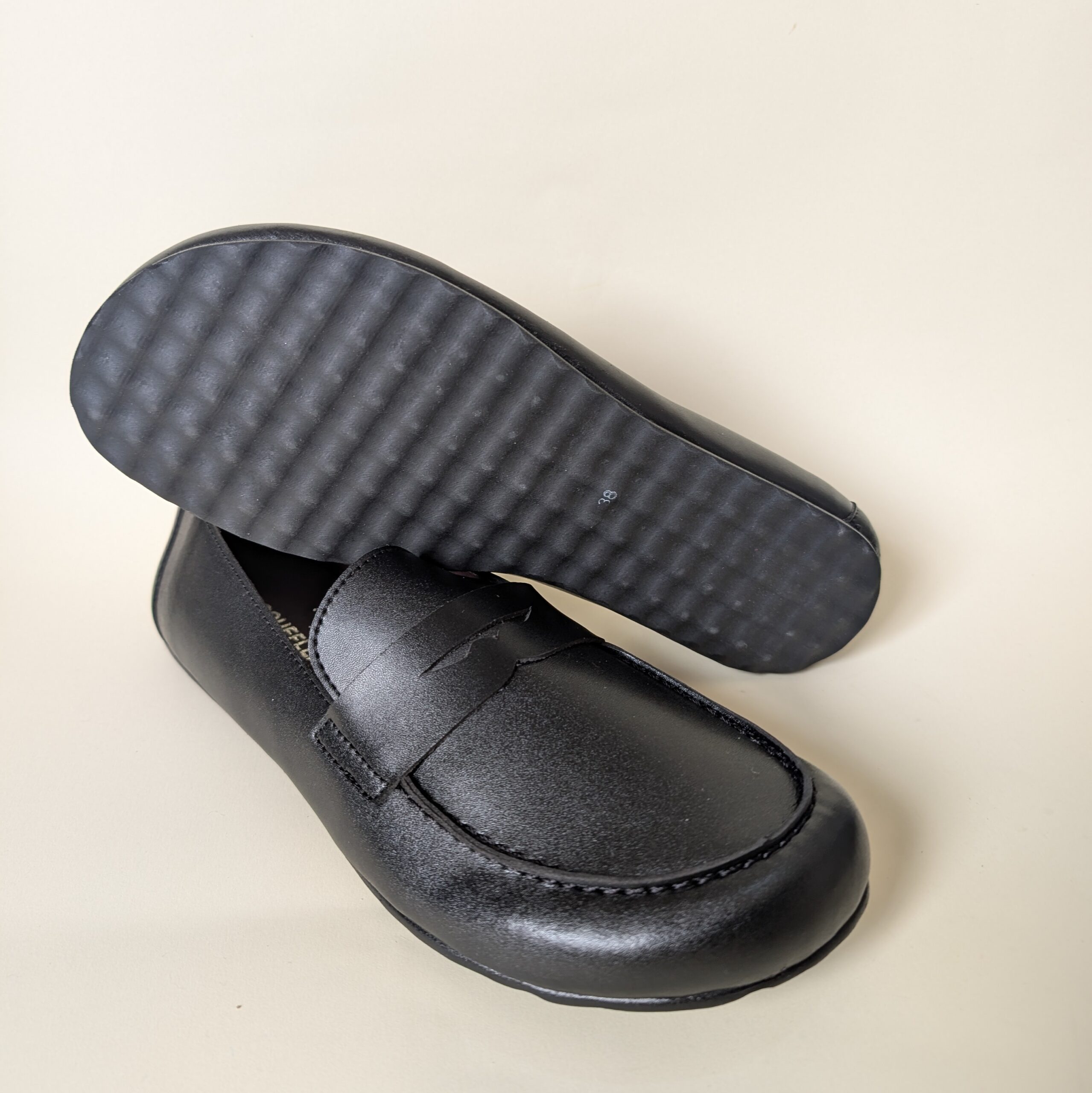 Los clásicos se reinventan para adaptarse a una nueva forma de entender el calzado. Estos mocasines en piel negra combinan un diseño atemporal con las ventajas del concepto barefoot, ofreciendo un zapato elegante y funcional a partes iguales.