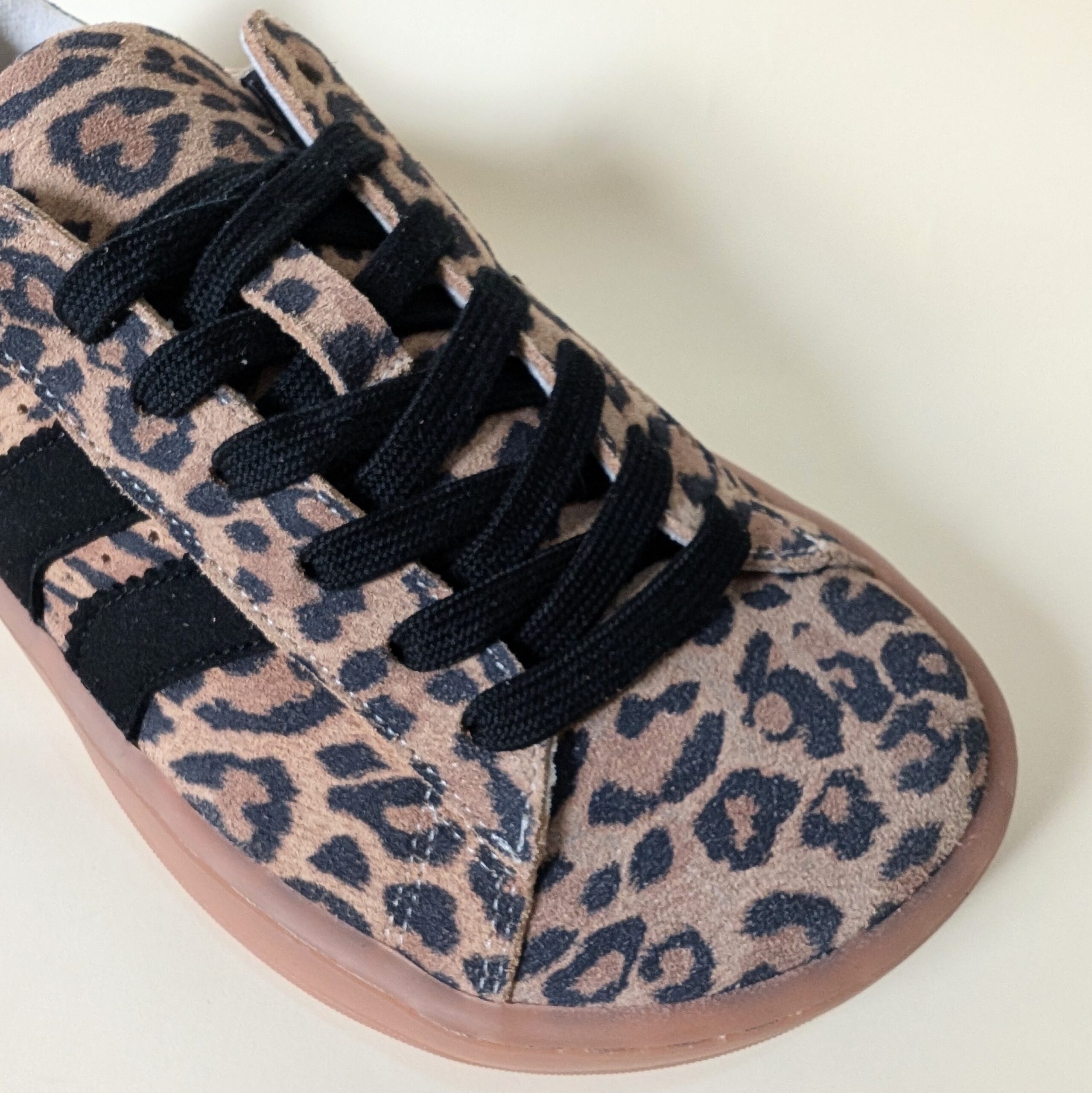 Dale carácter a tu día a día con estas zapatillas barefoot de adulto en estampado animal print. Su estilo deportivo y urbano combina el leopardo con dos rayas laterales en negro, un diseño que resulta llamativo, pero a la vez fácil de combinar. Son ese toque especial que eleva cualquier conjunto sin renunciar a la comodidad.