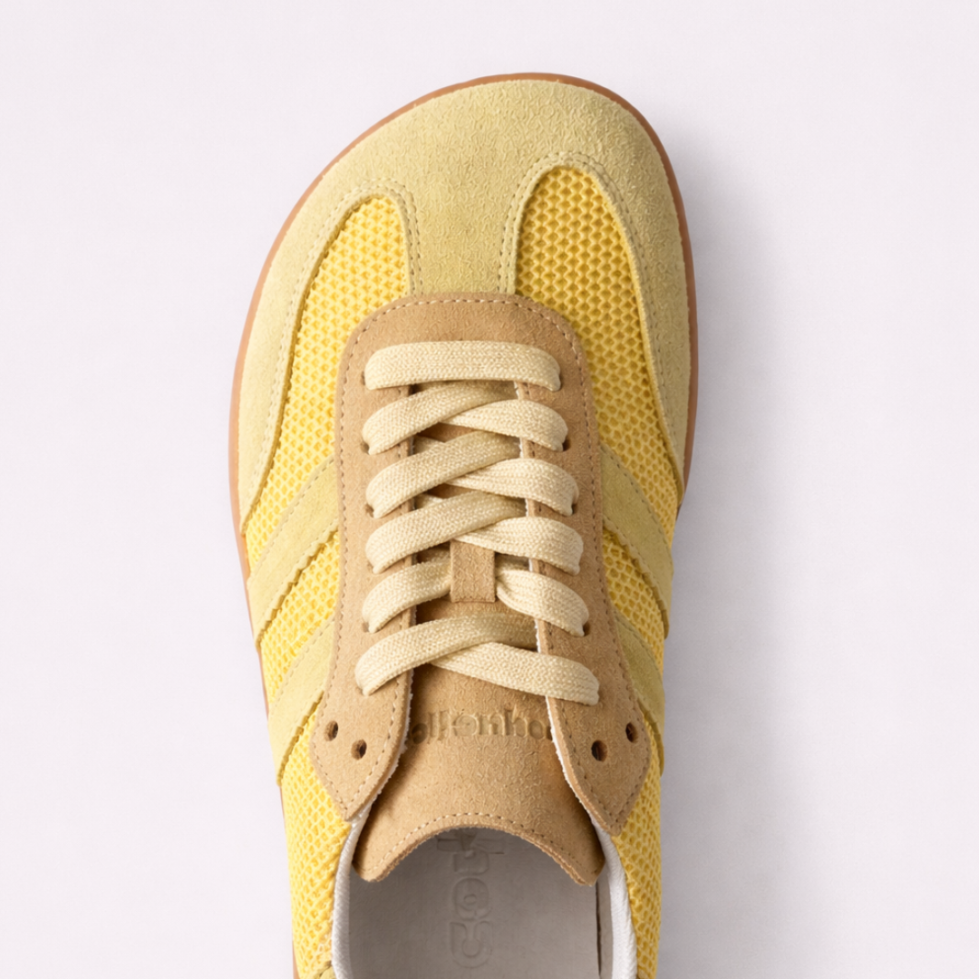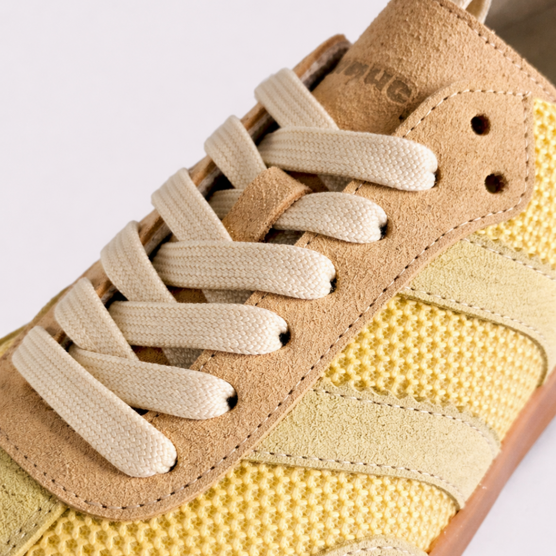 Las Zapatillas Coqueflex Mesh Amarillo son ya un modelo clásico de la marca, calzado barefoot para adulto diseñado para respetar la forma y función natural del pie. Combinan microfibra resistente con tejido tipo mesh transpirable, logrando una estructura ligera, flexible y especialmente adecuada para la temporada primavera-verano. El mesh favorece la ventilación y ayuda a mantener el pie fresco, mientras que la microfibra aporta estabilidad y durabilidad sin añadir peso innecesario.