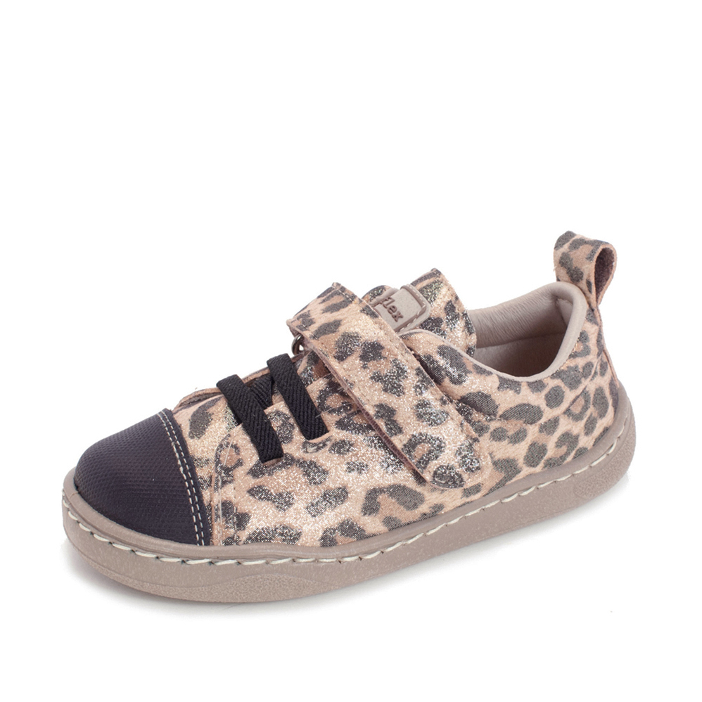 Estas zapatillas barefoot están pensadas para cuidar el desarrollo natural de los pies de los más pequeños. Confeccionadas en material textil de estampado de leopardo y una puntera reforzada en microfibra, ofrecen una protección eficiente mientras permiten una gran flexibilidad para el movimiento. Los cordones elásticos y el cierre de velcro hacen que sean fáciles de poner y quitar, lo que las convierte en la opción perfecta para niños en constante movimiento. Este modelo de zapatillas también están disponibles en color bronce.