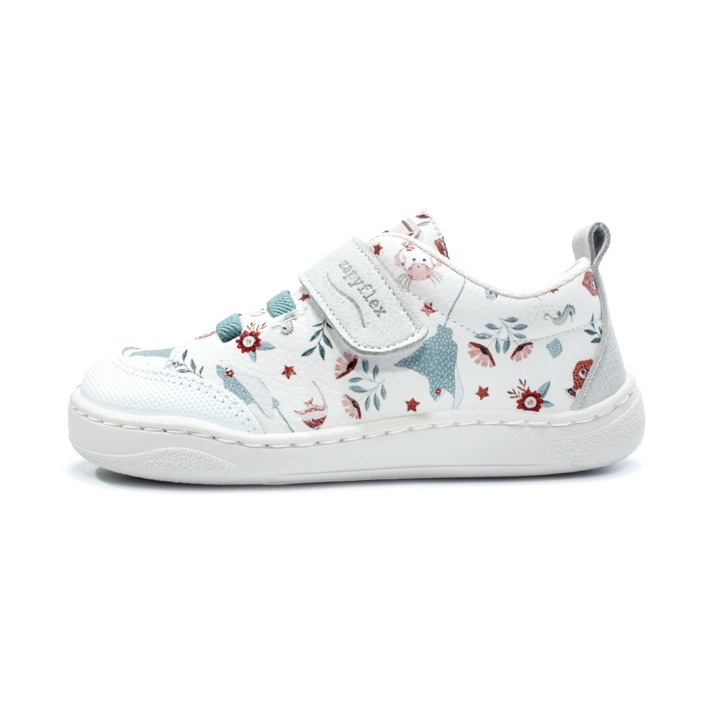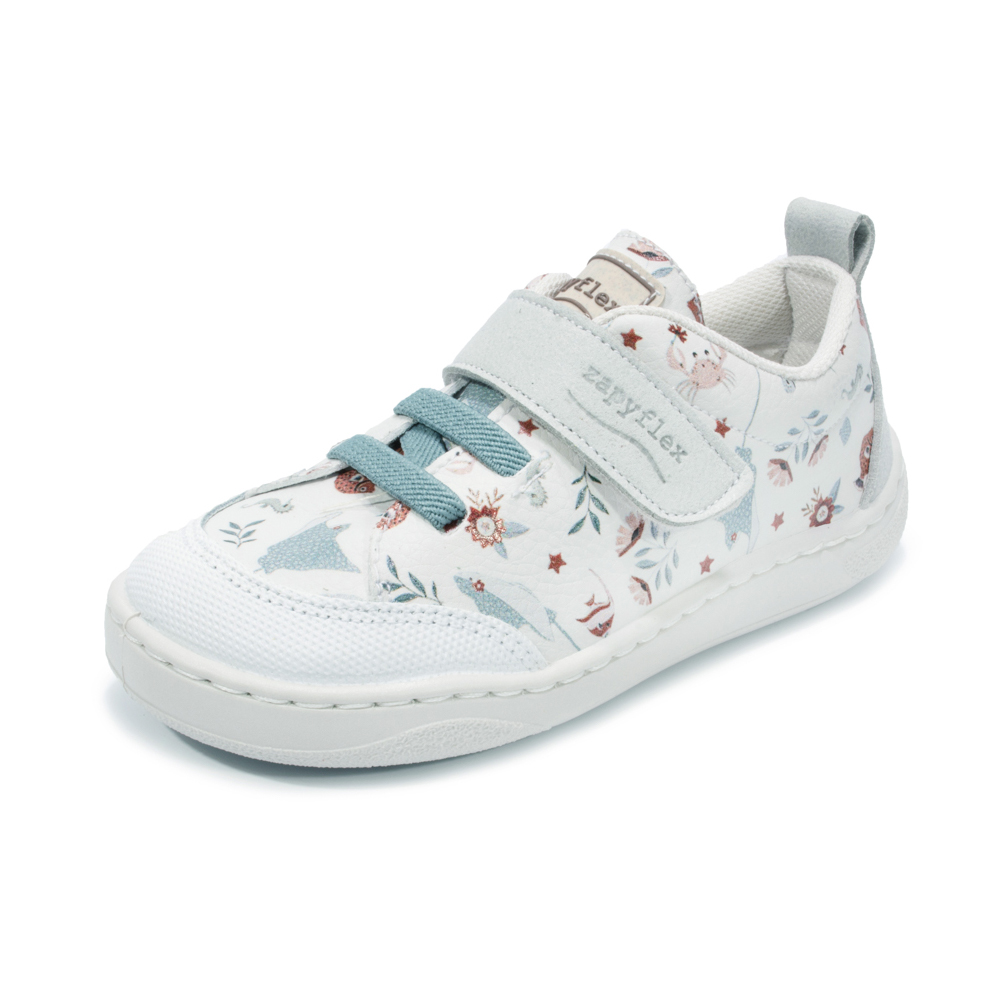 Estas zapatillas infantiles barefoot combinan comodidad, resistencia y un diseño alegre pensado para el día a día. Su estética es sencilla, pero con un toque divertido gracias a la piel con estampado floral, que aporta color y un aire fresco al conjunto. Un modelo fácil de llevar que encaja perfectamente con el ritmo activo de los niños.