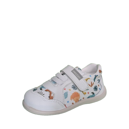 Estas zapatillas infantiles de la marca española Zapyflex destacan por su diseño divertido y cómodo, combina partes en color blanco con un estampado de dinosaurios y hojas. Un diseño sencillo que añade un toque de color y diversión, grrrr…